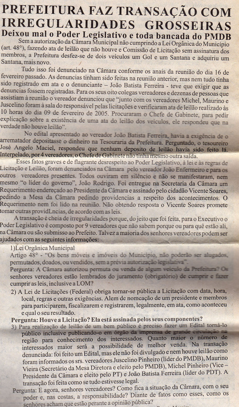Jornal Saca-Rolha - Edição Nº 111 - 24/03/2005 - página 1